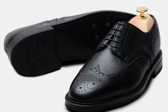 Der Derby in schwarzem Narbenleder ist eine besondere Version des Derbies, der aus traditionellem Kalbsleder gefertigt ist. Die Textur der Maserung verleiht jedem Outfit Charakter, von der lässigen Jeans bis hin zu Maßgeschneidertem.